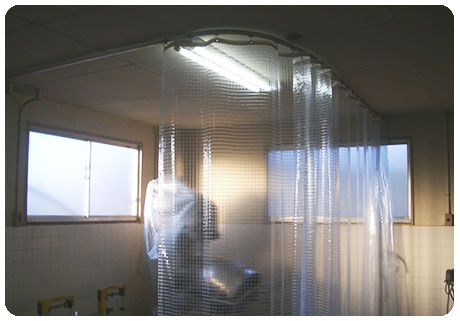 飛沫防止や目隠しとしてのご利用もございます。レールカーテンごと設置可能です。